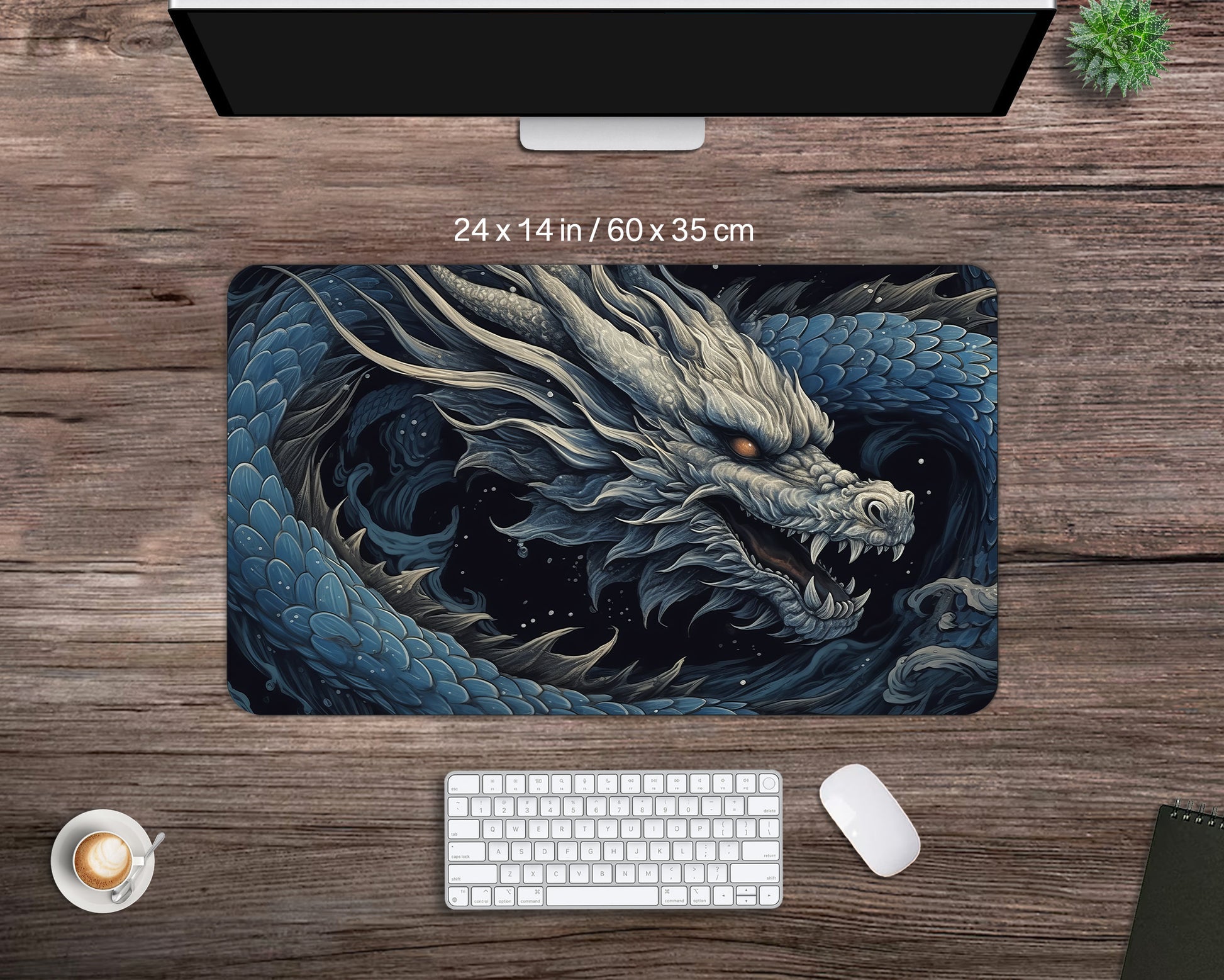 Blue Dragon Deskmat - Dragon mousepad - Gamer Aesthetic Mouse pad - Versatile Desk Mat - High-quality, Multipurpose - Gaming Desk Mat