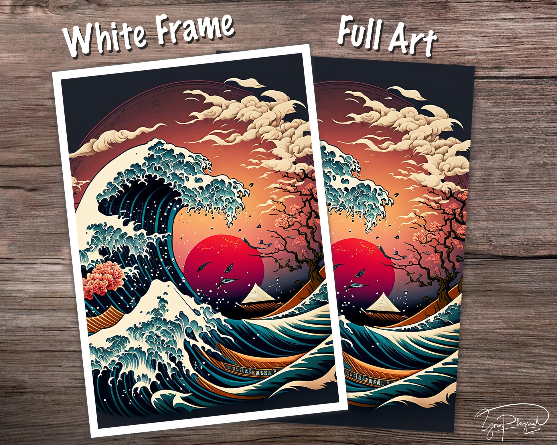 Inspired by the rich tradition of Japanese art, this card sleeve aims to capture the essence of the majestic waves that grace the shores of Japan. We sought to create a visual representation that not only protects your cherished cards but also evokes a sense of tranquility and admiration for the natural world.