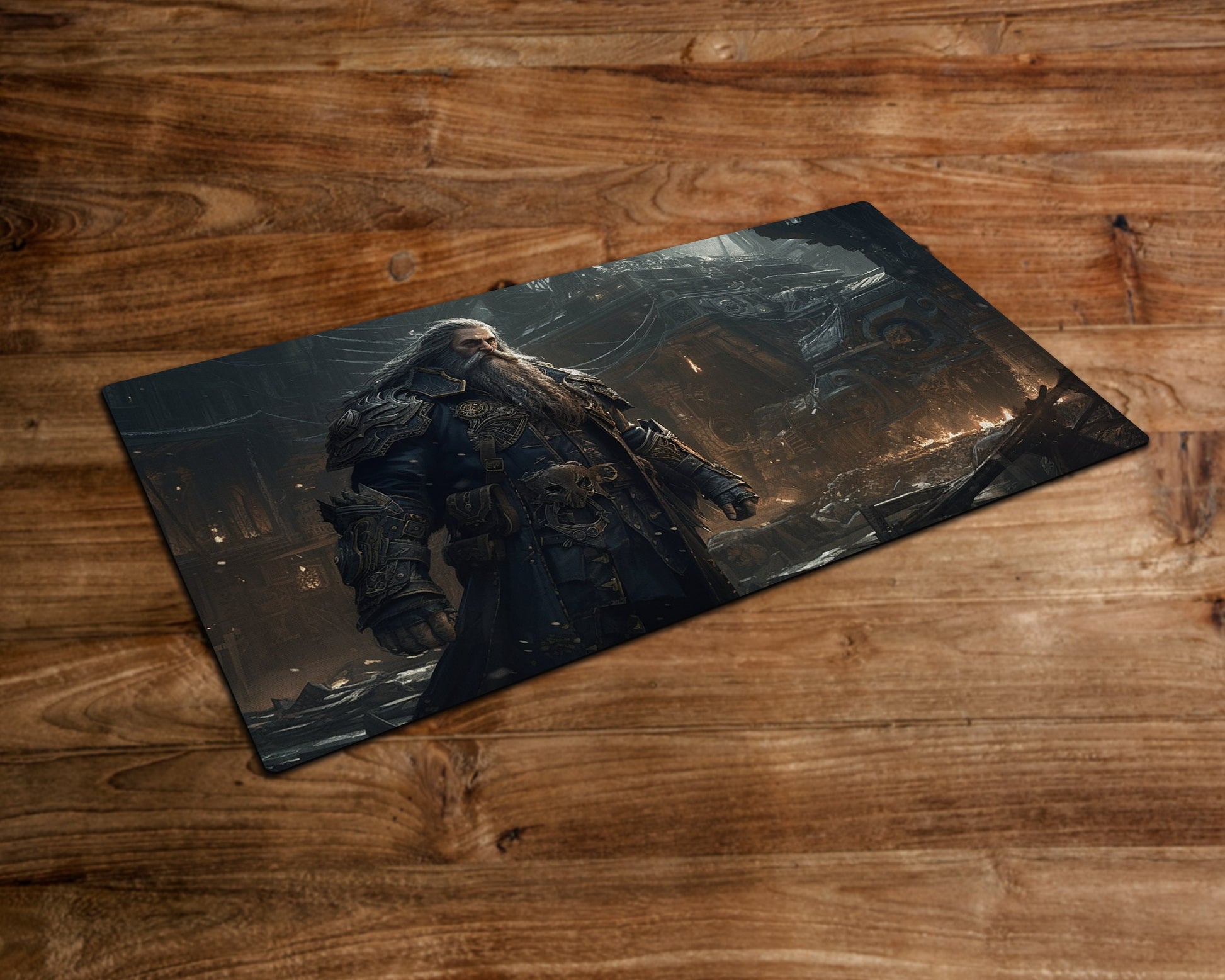 The Elder Warrior of Steam - MTG Playmat - 24 x 14 inches - MTG Gifts - Magic The Gathering Gifts - Stitched Playmat