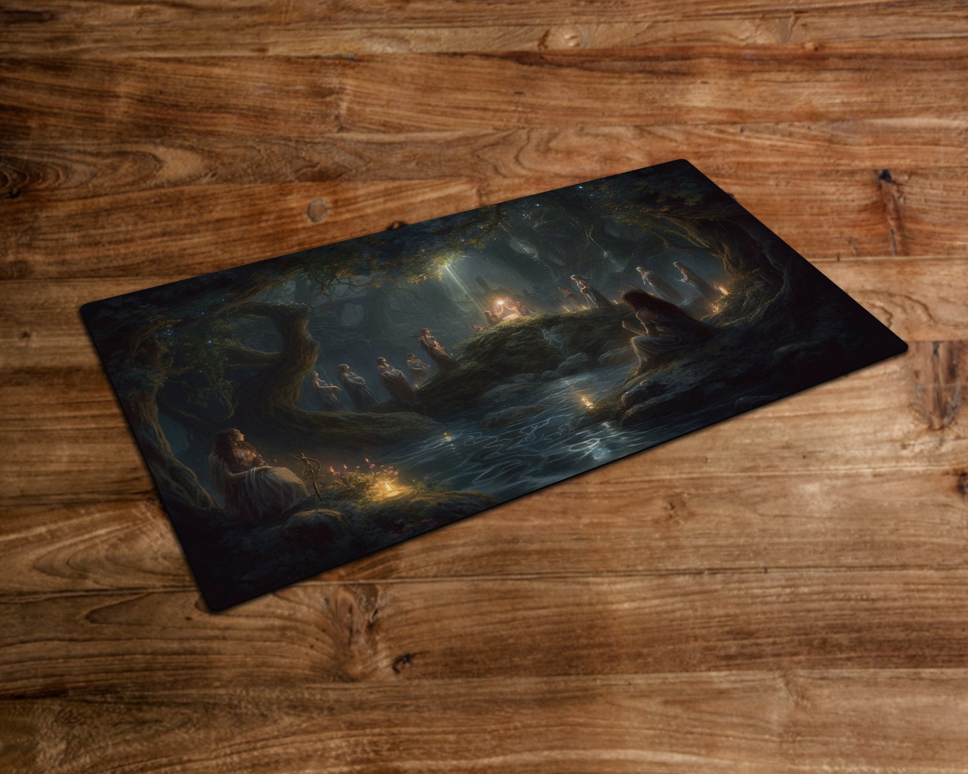 The Secret Meeting of the Woodland Elves - MTG Playmat - 24 x 14 inches -Playmat for TCG - Handcrafted