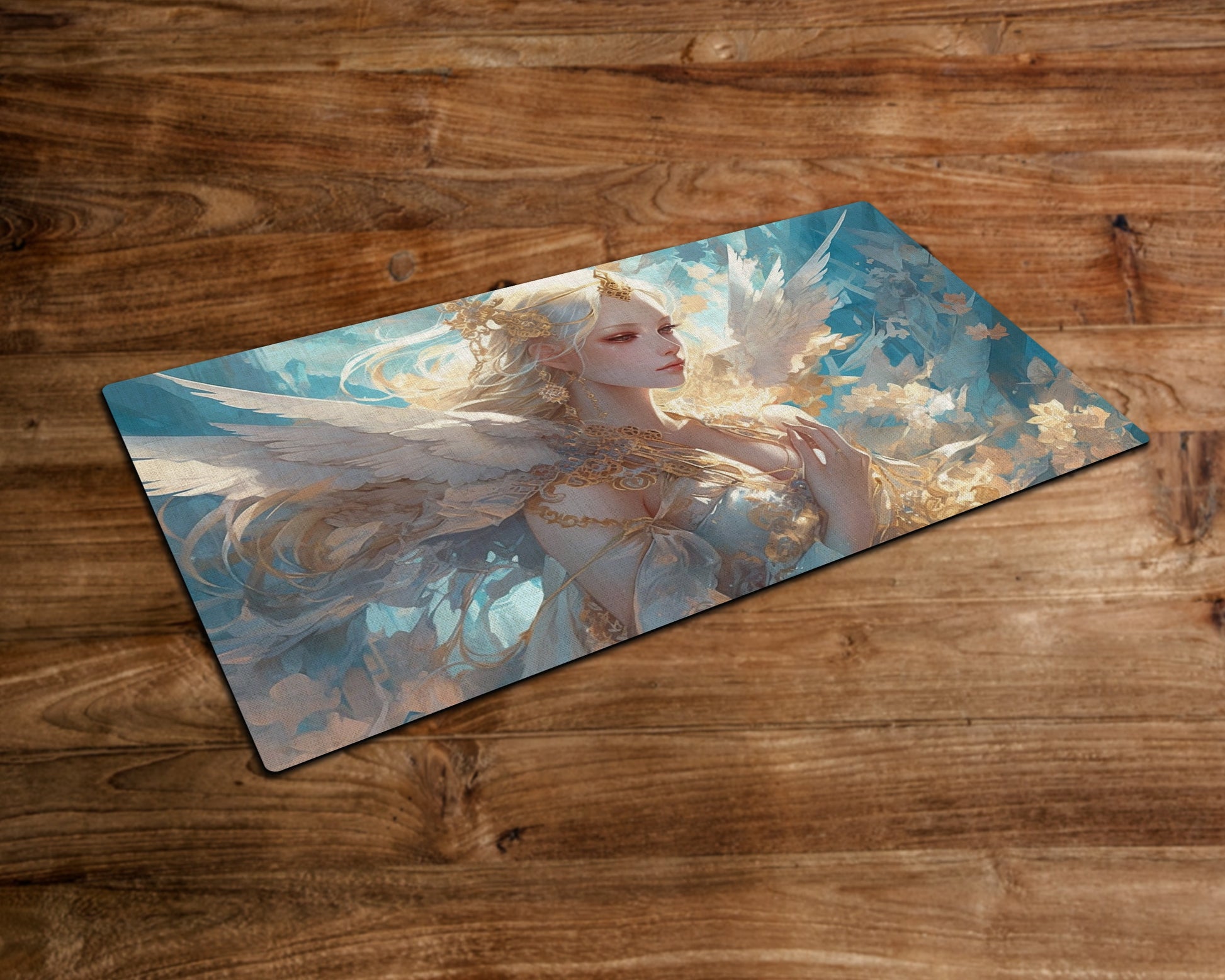 The White Winged Angel of Floral Paradise - MTG Playmat - 24 x 14 inches -Playmat for TCG - Handcrafted