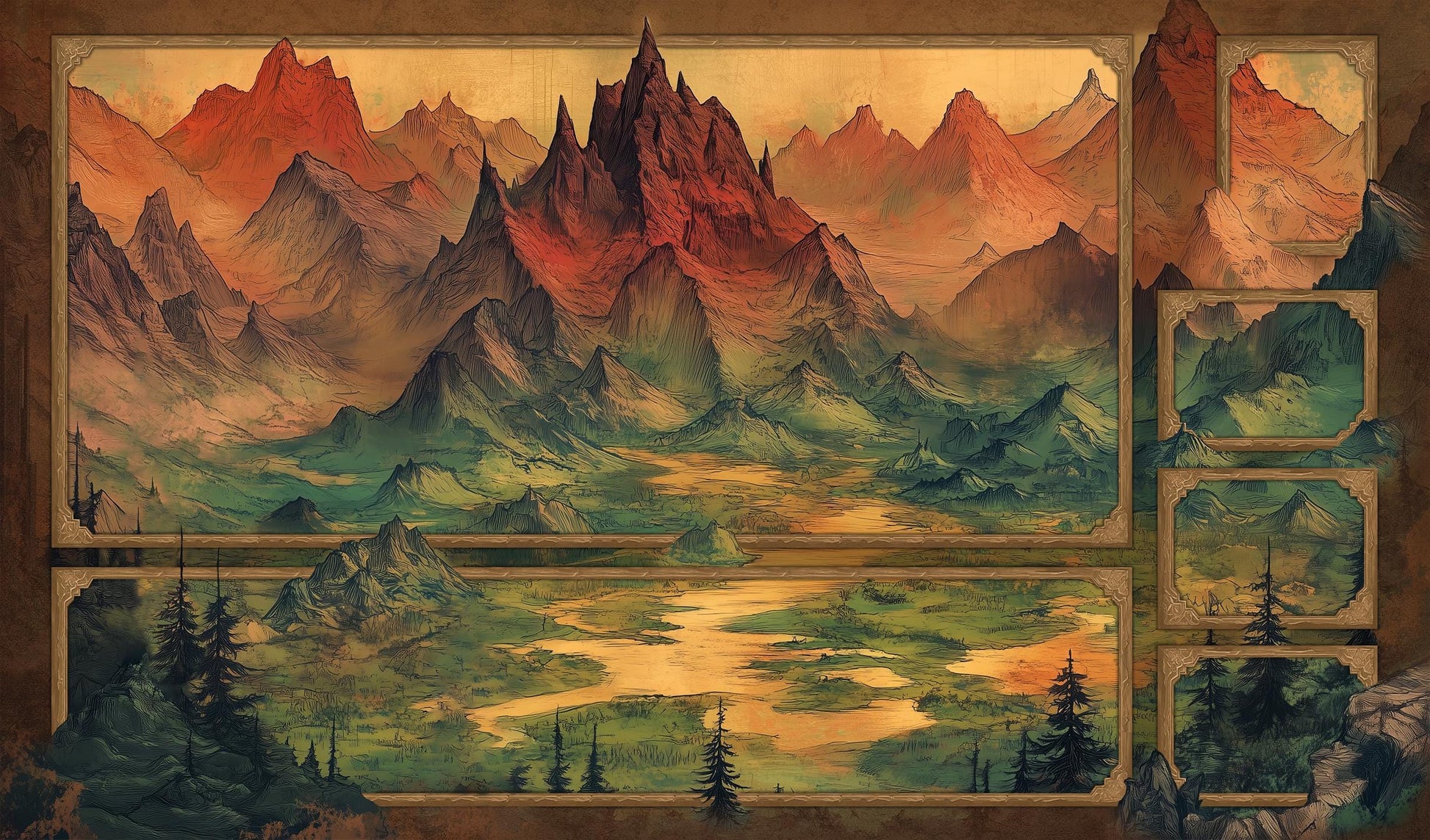 Embark on a journey through the rugged expanse of the Zoned Mountain, where every element of your gaming setup reflects the towering peaks and sweeping valleys of a majestic mountain range. This playmat is more than just a surface for your deck; it’s the gateway that leads you through a landscape of dramatic elevation, with sharp ridgelines and serene meadows. Say goodbye to ordinary, uninspired designs—your game deserves a canvas that captures the powerful beauty and awe-inspiring majesty of the mountains. Our design, inspired by the vibrant hues of dawn illuminating the high peaks and the tranquility of alpine valleys, ensures your playmat becomes the heart of your gaming experience. Let your mat be the portal to a world where every match feels like a trek through the breathtaking heights of the Zoned Mountain!